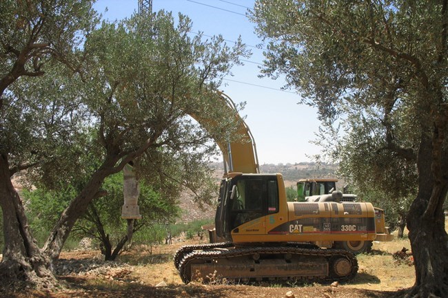 Local farmers said on Saturday that Israeli settlers used bulldozers to uproot the olive trees in order to expand a bypass road trekked by those settlers west of the town.