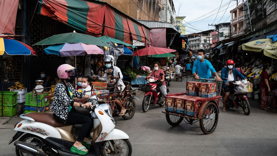 A street scene in Mae Sot, Thailand, December 10, 2021 One of two border crossings in Mae Sot, on the other side is the Myanmar city of Myawaddy, December 10, 2021