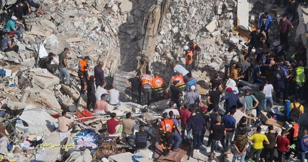 Sunday that Israel is committing war crimes in the Gaza Strip. *** At Least 34 Palestinians Killed Overnight as Israeli Occupation Apartheid Regime Forces Bombardment of Gaza Continues IMEMC, MAY 16, 2021 The Israeli occupation apartheid regime forces' bombardment of Gaza continued through Friday night into Saturday with no signs of letting up. At least 34 were killed in the bombings Saturday night, which included a missile strike that wiped out a family – a mother and her four young children in Shati refugee camp, west of Gaza City. In addition, Israeli jets targeted and destroyed a second high-rise housing international media outlets, destroying it completely including TV studios, equipment and transmission antennas. According to the Palestinian Ministry of Health, at least 139 Palestinians have been killed in Gaza since Monday, including at least 39 children and 22 women, and over 1000 others wounded. One Israeli soldier and 6 Israeli civilians have been killed in the same time period, including two children. The Palestinian family that was wiped out Friday night was that of Mohammed al-Hadidi (Abu Hatab). He told reporters that his wife and five children had gone to celebrate the Eid al-Fitr holiday with his wife’s brother. His wife and three of his children, age 6 to 14, were killed, while an 11-year-old is missing. Only his 5-month-old son Omar is known to have survived. “At 1:30 in the morning, I was surprised by severe vibration and shelling in the area, and I ran to see where the bombing was, I did not know where, and I was shocked when I saw the whole house of the children’s maternal uncle destroyed.” He continued, tears streaming down his face, “This is a major crime against humanity. Children are supposed safe in their homes. A civilian family is killed. What is their fault for being bombed?” The Al-Hadidi family that was killed last night consists of his wife: Maha Mohammad Abd al-Aal al-Hadidi (Abu Hatab), and his children Suhaib Muhammad al-Hadidi (14 years), Yahya Mohammad al-Hadidi (11 years), Abd al-Rahman Mohammad al-Hadidi (8 years) and Osama Mohammad al-Hadidi (6 years), and the only survivor Omar Muhammad al-Hadidi, injured, aged five months. Mohammad al-Yaqoubi, an eyewitness, described the bombing of his neighbor’s house, “We were sleeping and suddenly we heard the sound of intense bombardment. I live on the fifth floor and only a meter away from their house. When I managed to reach the ground, I was shocked by the destruction of our neighbor’s house. Children, oh God, where are mercy and humanity, a whole house destroyed in a brutal manner over people! ” Several other families were also torn to pieces in their homes Friday night. In al-Boreij refugee camp, four family members of the al-Omar family were killed, including a 13-year old girl. In Beit Lahia, four members of the Amen family were massacred by a missile. In the al-Jneina neighborhood in Rafah, four members of the al-Rantisi family were killed, including a two-year old baby. Updated from: “Israeli Soldiers Kill Dozens Of Palestinians, Including Many Children, In Gaza” IMEMC, May 15, 2021 at 02:04 The Israeli occupation apartheid regime army continued its bombardment and shelling of several parts of the Gaza Strip, Friday, killing dozens of Palestinians, including many children, and injuring hundreds, in addition to damaging and destroying dozens of homes and buildings across the besieged coastal region. At the time of this report, medics, rescue teams, and the residents are still retrieving corpses of slain Palestinians buried under the rubble of homes and buildings in northern Gaza, and trying to locate more, including the injured IMEMC, Update: May 15, 2021, at 02.04 Lina Mohammad Mahmoud al-Omar, 13, was killed by Israeli missiles that struck her home in the al-Boreij refugee camp, in central Gaza. Manar Khader Ahmad Issa al-Omar, 39, was killed by Israeli missiles that struck her home in the al-Boreij refugee camp, in central Gaza. Faiza Ahmad Mohmmad al-Omar, 45, was killed by Israeli missiles that struck her home in the al-Boreij refugee camp, in central Gaza. Mustafa Hasan Ahmad al-Abed al-Omar, 35, was killed by Israeli missiles that struck his home in Tal al-Hawa, in Gaza city. The soldiers also fired missiles into many homes in Gaza city, leading to at least one death so far. The army fired missiles into homes in Rafah and Khan Younis, in addition to the Shati’ refugee camp in Gaza and other areas of Gaza city, causing dozens of casualties, including fatalities, among them children. IMEMC, Update: May 15, 2021, at 01:26 Lamia’ Hasan Mohammad Attar, 27, was killed by Israeli occupation apartheid regime missiles that struck her home in Beit Lahia, in northern Gaza. Mohammad Ibrahim Mohammad Amen, 51, was killed by Israeli missiles that struck his home in Beit Lahia, in northern Gaza. Wala’ Mohammad Ibrahim Amen, 24, was killed by Israeli missiles that struck her home in Beit Lahia, in northern Gaza. Warda Mohammad Ibrahim Amen, 22, was killed by Israeli missiles that struck her home in Beit Lahia, in northern Gaza. Hadeel Mohammad Ibrahim Amen, 18, was killed by Israeli missiles that struck her home in Beit Lahia, in northern Gaza. IMEMC, Update: May 15, 2021 at 01:20 Siham Yousef Mohammad Rantisi, 66, was killed by Israeli missiles that struck her home in the al-Jneina neighborhood in Rafah. Shaima’ Diab Mohammad Rantisi, 21, was killed by Israelioccupation apartheid regime missiles that struck her home in the al-Jneina neighborhood in Rafah. Ibrahim Mohammad Ibrahim Rantisi, 2, was killed by Israeli missiles that struck his family’s home in the al-Jneina neighborhood in Rafah. Raed Ibrahim Khamis Rantisi, 29, was killed by Israeli missiles that struck her home in the al-Jneina neighborhood in Rafah. Kholoud Fuad Farhan Zamily, 27, was killed by Israeli missiles that struck her home in the at-Tannour neighborhood in Rafah. Media sources in Gaza said the Israel