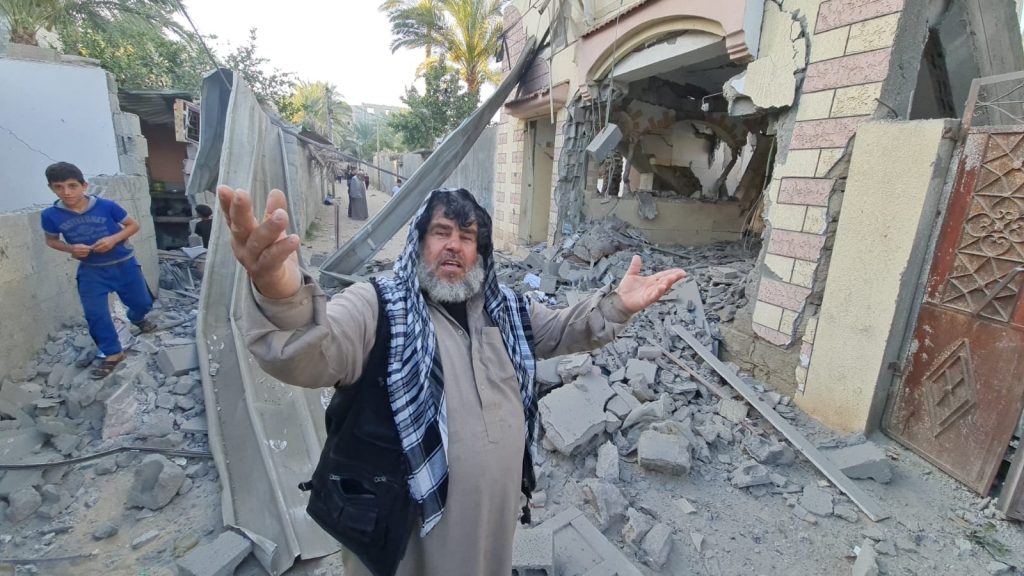 Site of an Israeli air strike on a residential neighborhood in Gaza City, on May 10, 2021 A Palestinian man from the family of Al-Astal after the destruction of his home in Khan Younis by Israeli forces, May 10, 2021