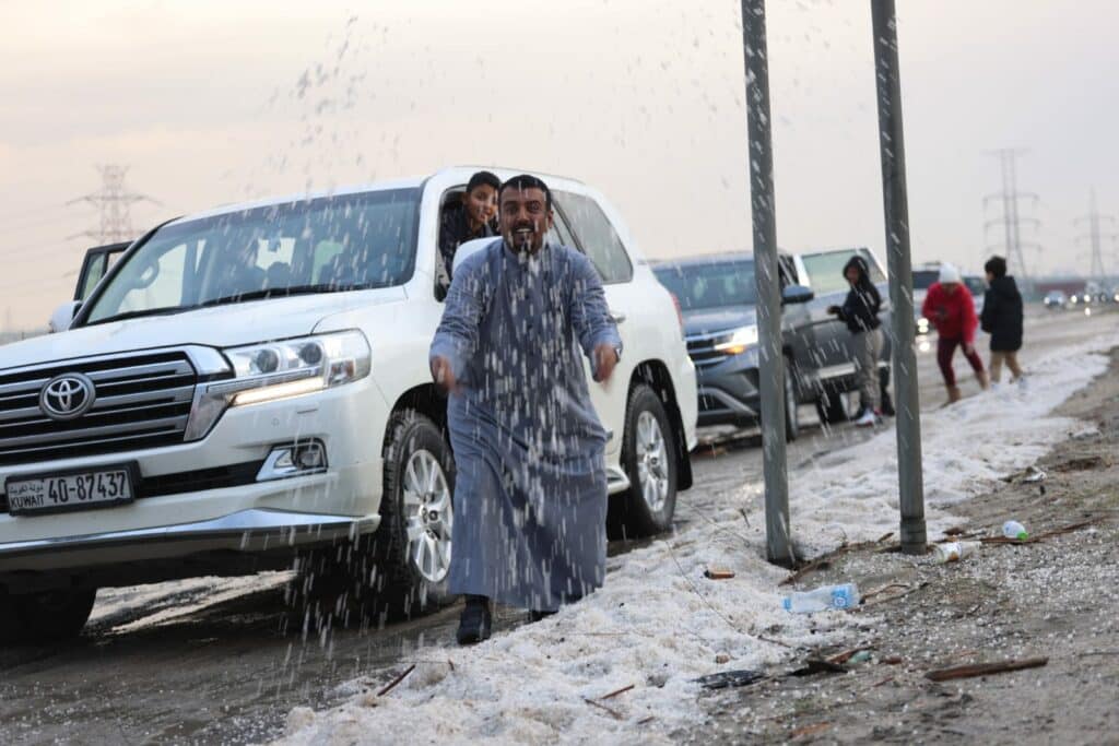 Thundershowers, hailstorm lash Kuwait amid cold wave By Sajeev K Peter Kuwait Times, December 27, 2022 Heavy rains accompanied by lightning, thunder and hail lashed Kuwait on Tuesday, disrupting movement of pedestrians and vehicles. The rains hit most parts of the country on Monday and Tuesday, as cloudy skies blanketed the country, while motorists endured bumper-to-bumper traffic on rain-soaked roads. Kuwait’s meteorological department had forecast heavy but scattered rains accompanied by thunder across the country with hail over some areas. Wind speed will exceed 55 km/h, resulting a drop in visibility over some areas, and rough seas, it warned. The temperature in Kuwait has dropped significantly over the last few days, and according to official forecasts, the mercury can fall to subzero temperatures in remote areas. Kuwait has been affected by weeks of inclement weather, which prompted authorities to advise residents to take precautions in case of rain, and asked people to stay away from areas of flash flooding and waterlogged roads. The interior ministry Tuesday urged motorists and sea-goers to be cautious amid the current turbulent weather across the country. In a press release, the ministry urged drivers to follow security authorities’ instructions for using alternative routes and avoiding swamped roads, calling on motorists to maintain a safe distance from vehicles in front. It reminded parents to seat children in the backseats. Meanwhile, authorities in several Gulf countries also renewed weather warnings of heavy rains that could batter the usually arid region. Dubai Police warned motorists to exercise utmost caution when they drive on waterlogged roads. Gulf countries usually experience mild winters, with the exception of rare and brief episodes of flooding and rain between November and January. Such weather is highly disruptive in the region, where authorities often do not install heavy drainage systems due to the rarity of rainfall. Thundershowers, hailstorm lash Kuwait amid cold wave - Kuwait TimesKuwait hit by snowfall, hailstones along with rain showers Arab Times, December 27, 2022 Rains accompanied by hailstones fell in a number of areas in Kuwait which brought great joy from some Kuwaitis and expats, in various regions of Kuwait. Besides heavy rains in some parts, the southern part of the country saw showers of hailstones and snowfall especially in the camp areas that were most fortunate to enjoy wonderful winter weather. *** Rare hailstorm hits Kuwait, one of the hottest countries on Earth Al-Arabiya 28 December ,2022: Kuwait, one of the hottest countries on Earth, has been hit by a rare hailstorm that delighted children and their parents, with images of the winter white shared widely on social media Wednesday. “We have not seen so much hail during the winter season in 15 years,” Muhammad Karam, a former director of Kuwait’s meteorological department, told AFP. Pictures and videos of southern roads partially blanketed in hail and ice spread online to celebrate the rare weather event. Children donned scarves and raincoats as they scooped up hail in the Umm al-Haiman district, about 50 kilometers (30 miles) south of Kuwait City. Kuwait’s meteorological department said precipitation since Tuesday had reached up to 63 millimeters but that the weather was clearing up. Karam said he expects the phenomenon to reoccur as climate change disrupts weather patterns. The oil-rich Gulf nation endures blistering summer heat, and scientists predict it could become unlivable in future because of climate change. In 2016, summer temperatures peaked at 54 degrees Celsius (129 degrees Fahrenheit). Parts of Kuwait could get 4.5 degrees Celsius hotter from 2071 to 2100 compared with the historical average, the Environment Public Authority has warned. Rare hailstorm hits Kuwait, one of the hottest countries on Earth | Al Arabiya English *** Kuwait is hit by freak hail storm: Blanket of winter white covers the desert country in heaviest storm in fifteen years Adults and children alike marvelled at the weather in Kuwait after a hail storm Pictures showing the winter white were shared widely online on Wednesday Locals played with ice on the side of the road and danced in the downpour There are concerns hail storms will reoccur in future due to climate change Daily Mail, 28 December 2022 Adults and children alike have marvelled at the weather in Kuwait after a hail storm bore down on one of the hottest places on Earth. Pictures showing the winter white were shared widely online on Wednesday, as locals played with ice chunks and danced in the downpour. 'We have not seen so much hail during the winter season in 15 years,' Muhammad Karam, a former director of Kuwait's meteorological department, said. Southern roads were partially blanketed in hail and ice, while locals celebrated the rare weather event. Children donned scarves and raincoats as they scooped up hail in the Umm al-Haiman district, about 50 kilometres (30 miles) south of Kuwait City. Adults and children alike have marvelled at the weather in Kuwait after a hail storm bore down on one of the hottest places on Earth Locals play with ice chunks after Kuwait hit by hail storm Loaded: 0% Progress: 0% 0:00 Previous Play Skip Mute Current Time0:00 / Duration Time0:50 Fullscreen Need Text Pictures showing the winter white were shared widely online on Wednesday, as locals played with ice chunks and danced in the downpour Kuwait's meteorological department said precipitation since Tuesday had reached up to 63 millimetres but that the weather was clearing up. Temperatures reached 18C today but forecasters warned of a 'rather cold' turn with moderate wind and fog. The rain is expected to subside for at least the next few days but will return with scattered showers on Sunday to ring in the new year. On average, Kuwait records 1.2 days of rainfall each year in December, with precipitation peaking at two days per month in January, averagin