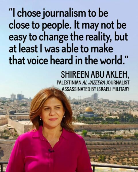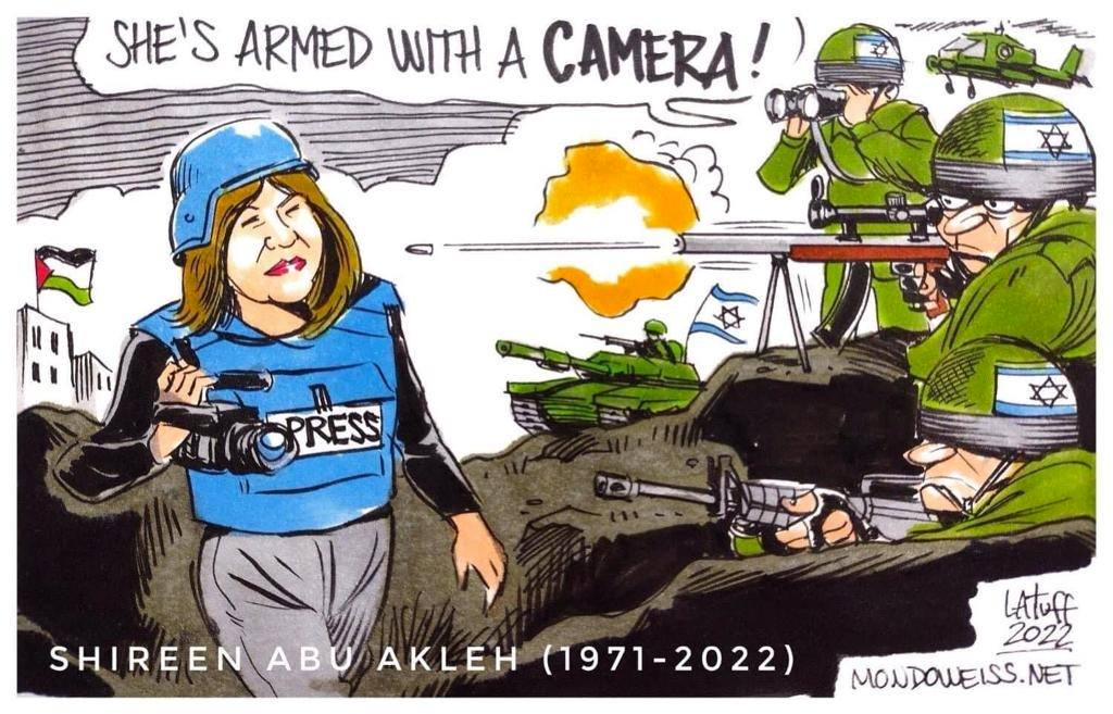 Palestinian young man, Khalil Muslat Al-Yaoori, 18, was killed by Israeli occupation soldiers in Al-Beereh, with a bullet in his heart, today, May 11, 2022 Palestine Today, May 11, 2022 ÇÓÊÔåÇÏ ÔÇÈ ÈÑÕÇÕ ÇáÇÍÊáÇá Ýí ÌÈá ÇáØæíá ÈãÏíäÉ ÇáÈíÑÉ ÝáÓØíä Çáíæã - ÛÒÉ ÇáÓÇÚÉ 10:23 Õ 11 ãÇíæ 2022 ÇÓÊÔåÏ ÕÈÇÍ Çáíæã ÇáÃÑÈÚÇÁ 11/5/2022¡ ÔÇÈ ÝáÓØíäí ÈÑÕÇÕ ÇáÇÍÊáÇá "ÇáÅÓÑÇÆíáí" Ýí ÌÈá ÇáØæíá ÈãÏíäÉ ÇáÈíÑÉ ÈÇáÖÝÉ ÇáãÍÊáÉ. æÐßÑÊ æÒÇÑÉ ÇáÕÍÉ¡ Ãä ÇáÔÇÈ ËÇÆÑ Îáíá ãÕáØ ÇáíÇÒæÑí 18 ÚÇãÇð¡ ÇÓÊÔåÏ ÈÚÏ ÅÕÇÈÊå ÈÑÕÇÕÉ Ýí ÇáÞáÈ ÈÔßá ãÈÇÔÑ ÃØáÞåÇ Úáíå ÌäæÏ ÇáÇÍÊáÇá Úáì ÌÈá ÇáØæíá ÈãÏíäÉ ÇáÈíÑÉ. æßÇäÊ ÇáÕÍÝíÉ ÔíÑíä ÃÈæ ÚÇÞáÉ ãÑÇÓáÉ ÞäÇÉ ÇáÌÒíÑÉ Ýí ÝáÓØíä ÞÏ ÇÑÊÞÊ ÔåíÏÉ ÎáÇá ÚãáåÇ Ýí ÇáÊÛØíÉ ÇáÕÍÝíÉ áÇÞÊÍÇã ãÎíã Ìäíä. ÇÓÊÔåÇÏ ÔÇÈ ÈÑÕÇÕ ÇáÇÍÊáÇá Ýí ÌÈá ÇáØæíá ÈãÏíäÉ ÇáÈíÑÉ | ÝáÓØíä Çáíæã (paltoday.ps) *** Israeli Occupation Soldiers Kill Veteran Palestinian Journalist, Shireen Abu Aqleh, Injure Another, In Jenin IMEMC, MAY 11, 2022 Israeli occupation soldiers killed, Wednesday dawn, a prominent Palestinian journalist, Al-Jazeera TV correspondent Shireen Abu Aqleh, 51, and injured another journalist after targeting them with sniper fire when many journalists gathered to cover an invasion of Jenin refugee camp in the northern West Bank. The Palestinian Health Ministry has confirmed that Shireen was shot with a live round in the head while wearing his press vest and helmet when an Israeli army sharpshooter fired one round at her. The Ministry added that the soldiers first shot journalist Ali Sammoudi with a live round in the back, just as the journalists from various media agencies gathered in an open area in a clear line of sight from Israeli soldiers when the army committed its heinous crime. Sammoudi, who was shot in the back, said that he, Shireen, and several other journalists gathered near a UNRWA-run school near Jenin refugee camp and were all wearing press vests and helmets before the soldiers shot him in the back and then shot Shireen with a live round in the head. “The soldiers had a clear view of us. They knew we were journalists, yet, then deliberately targeted us with sniper fire,” Sammoudi said, “Nothing was happening there, no protests, no exchange of fire between the soldiers and the Palestinian fighters; they targeted us knowing we are all journalists – what they did was a crime and a deliberate attack.” Al-Jazeera TV issued a statement denouncing the deliberate targeting of reporters, the assassination of Shireen Abu Aqleh, and the shooting of Ali Sammoudi. Al-Jazeera said Abu Aqleh was assassinated and was not by accident and added that eyewitnesses and other journalists, including Shatha Hanaysha, who was standing next to Shireen, revealed that the army killed Shireen before its snipers also pinned down Hanaysha and several journalists. “We stood together in a collective way as journalists, then we started moving. We were shocked by the live ammunition fired at us, we reached an area that did not allow us to withdraw.” Hanaysha told Al-Jazeera. “We were just facing the snipers. If they were not really willing to kill some of us, they could have started shooting before our arrival in this narrow area. I see this as a clear assassination of journalists,” she said. “The one that killed Shireen was intended to kill her because he shot the bullet at an area of her body that was not protected,” Hanaysha also said. The Al-Jazeera Media Network issues an official statement condemning the Israeli crime and holding the Israeli government and its occupation army responsible. “Al Jazeera Media Network condemns this heinous crime, which intends to only prevent the media from conducting their duty. Al Jazeera holds the Israeli government and the occupation forces responsible for the killing of Shireen. It also calls on the international community to condemn and hold the Israeli occupation forces accountable for their intentional targeting and killing of Shireen.” “The Israeli authorities are also responsible for the targeting of Al Jazeera producer Ali al-Sammoudi, who was also shot in the back while covering the same event, and is currently undergoing treatment.” “Al Jazeera extends its sincere condolences to the family of Shireen in Palestine and to her extended family around the world, and we pledge to prosecute the perpetrators legally, no matter how hard they try to cover up their crime, and bring them to justice.” Shireen was born in occupied Jerusalem in the year 1971; she hails from a Palestinian Christian family in Bethlehem. She lived in Jerusalem and, as a child, she studied at the Rosary Sisters School in Beit Hanina, in occupied Jerusalem. She obtained her B.A. degree in journalism from Al-Yarmouk University in Jordan and returned to Palestine where she worked in various professions, including Palestine Radio, The UNRWA, Amman Satellite TV, Radio Monte Carlo, and in the year 1997, she started working for the Al-Jazeera News Agency. The Palestinian Authority condemned the assassination of Shireen and the ongoing Israeli crimes against civilians, including Journalists. Prime Minister Mohammad Shtayyeh issued a statement mourning the killing of Abu Akleh and denouncing the Israeli crime. “She was killed while exposing the horrific Israeli crimes against the Palestinian people.” Israeli Soldiers Kill Veteran Palestinian Journalist, Injure Another, In Jenin – – IMEMC News *** The Execution of Shirin: Yet Another Journalist Gunned Down by Israeli Occupation Soldiers IMEMC, MAY 12, 2022 After the Israeli occupation soldier