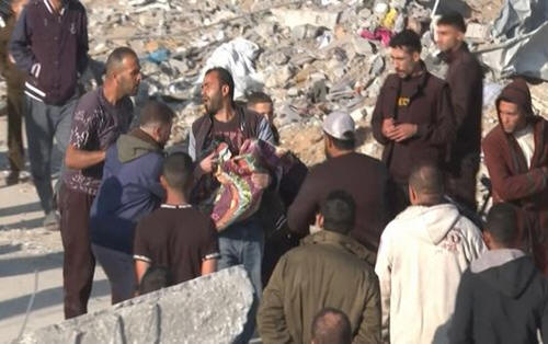 victims of the Israeli genocidal air strikes on Gaza Strip, in