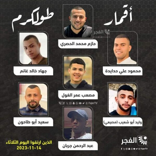 Seven Palestinian young men were killed by Israeli occupation in Tulkarm, on November 14, 2023 A Palestinian injured child who survived an Israeli
