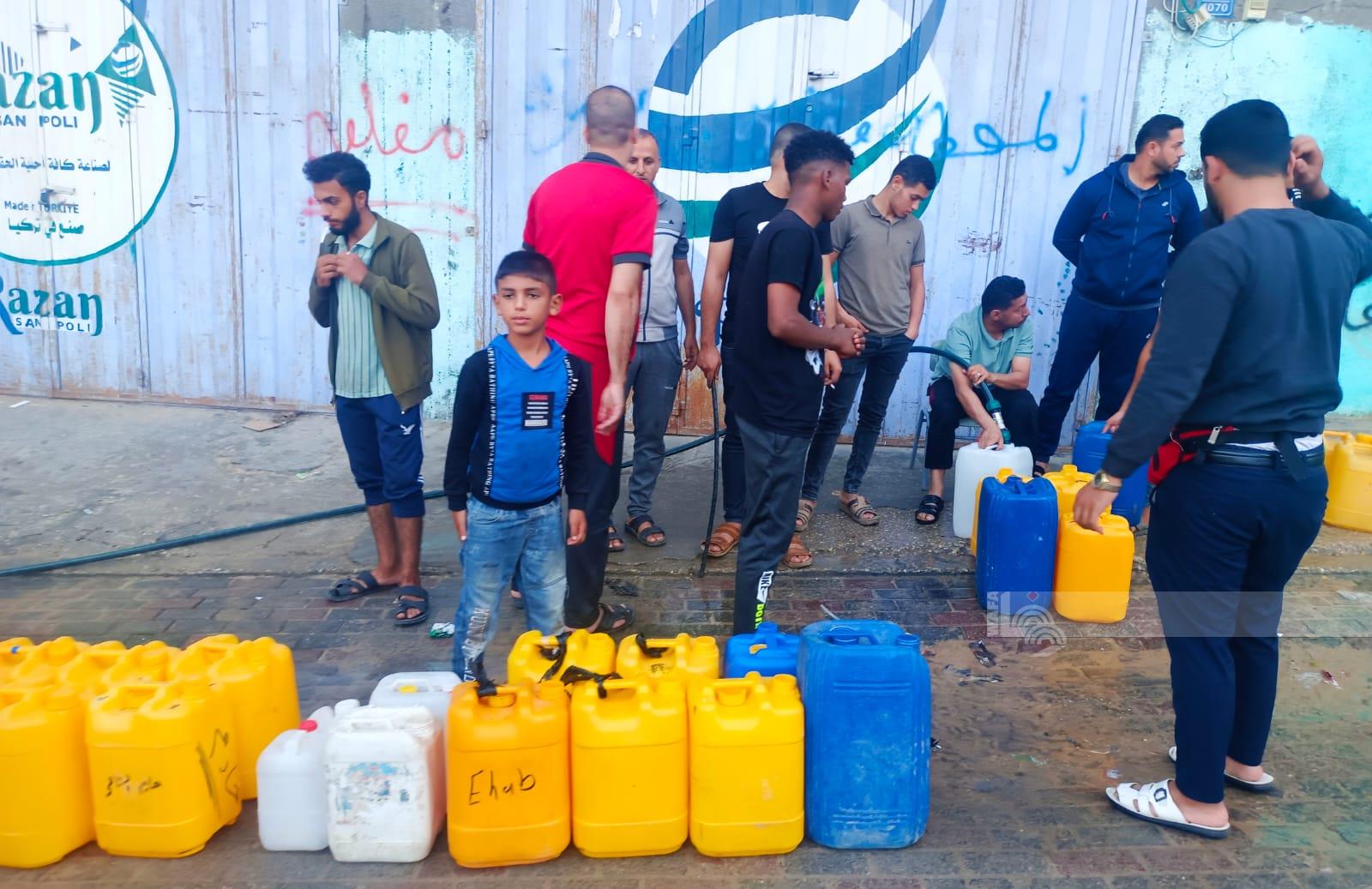 People waiting to get water after Israel cut water supply to the Gaza Strip, November 16, 2023 Displaced Palestinians moving from the north to the south of the Gaza Strip,