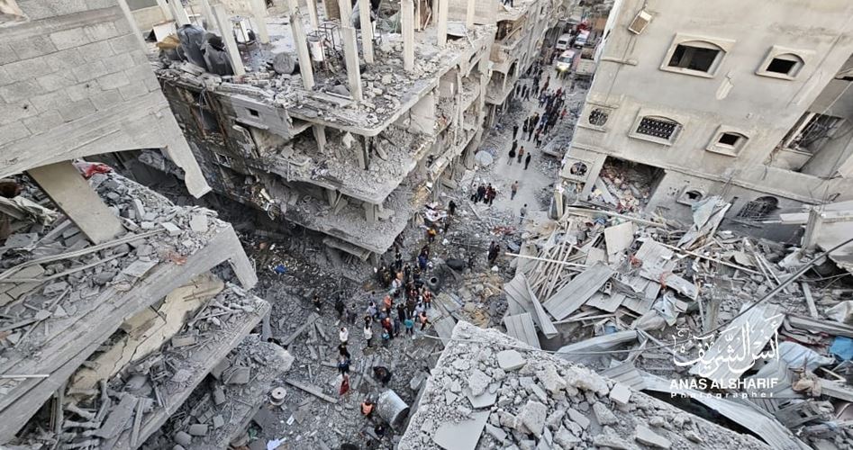 Israeli tanks deployed in the vicinity of the Al Shifa Hospital in Gaza City, November 2023 A view of a residential neighborhood destroyed by Israeli genocidal air strikes on Gaza Strip, on November 19, 2023