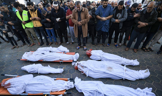 Palestinian Muslims performing the Jumu'a prayer in the streets due to denying them entry to Al-Aqsa Mosque in Jerusalem, November 17, 2023 Funeral prayer performed on victims of an Israeli genocidal air strike on Gaza, November 17, 2023