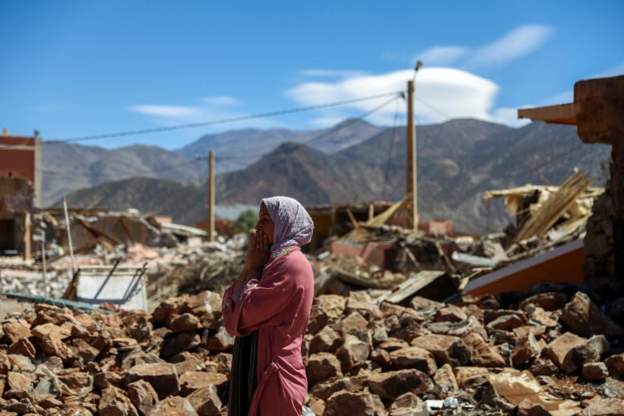 *** Photos from Morocco earthquake zone show widespread devastation CBS, SEPTEMBER 11, 2023 An earthquake has sown destruction and devastation in Morocco, where death and injury counts continued to rise early Monday as rescue crews continued digging people out of the rubble, both alive and dead, in villages that were reduced to rubble. Law enforcement and aid workers — Moroccan and international — continued arriving Monday in the region south of the city of Marrakech that was hardest hit by the magnitude-6.8 tremor on Friday night, and several aftershocks. Thousands of residents were waiting for food, water and electricity, with giant boulders blocking steep mountain roads. The majority of the deaths — at least 2,680 as of Monday, with another 2.500 injured — were in Marrakech and five provinces near the epicenter, the Interior Ministry reported. Search and rescue and debris removal teams were out with dogs searching for survivors and bodies. The Friday temblor toppled buildings that couldn't withstand the shaking, trapping people in rubble and sending others fleeing in terror. The area was shaken again Sunday by a magnitude 3.9 aftershock, according to the U.S. Geological Survey. There was little time for mourning as survivors tried to salvage whatever they could from damaged homes. Khadija Fairouje's face was puffy from crying as she joined relatives and neighbors hauling possessions down rock-strewn streets. She had lost her daughter and three grandsons aged 4 to 11 when their home collapsed while they were sleeping less than 48 hours earlier. "Nothing's left. Everything fell," said her sister, Hafida Fairouje. Help was slow to arrive in Amizmiz, where a whole chunk of the town of orange and red sandstone brick homes carved into a mountainside appeared to be missing. A mosque's minaret had collapsed. "It's a catastrophe,'' said villager Salah Ancheu, 28. "We don't know what the future is. The aid remains insufficient." The worst destruction was in rural communities that are hard to reach because the roads that snake up the mountainous terrain were covered by fallen rocks. Flags were lowered across Morocco, as King Mohammed VI ordered three days of national mourning starting Sunday. The army mobilized search and rescue teams, and the king ordered water, food rations and shelters to be sent to those who lost homes. Some slept on the ground or on benches in a Marrakech park. Tourists and residents lined up to give blood. "I did not even think about it twice," Jalila Guerina told The Associated Press, "especially in the conditions where people are dying, especially at this moment when they are needing help, any help." She cited her duty as a Moroccan citizen. Rescuers backed by soldiers and police searched collapsed homes in the remote town of Adassil, near the epicenter. Military vehicles brought in bulldozers and other equipment to clear roads, MAP reported. Distraught parents sobbed into phones to tell loved ones about losing their children. Ambulances took dozens of wounded from the village of Tikht, population 800, to Mohammed VI University Hospital in Marrakech. Many were trapped under the rubble. Friday's quake had a preliminary magnitude of 6.8 when it hit at 11:11 p.m., lasting several seconds, the USGS said. A magnitude 4.9 aftershock hit 19 minutes later, it said. The collision of the African and Eurasian tectonic plates occurred at a relatively shallow depth, which makes a quake more dangerous. It was the strongest earthquake to hit the North African country in over 120 years, according to USGS records dating to 1900, but it was not the deadliest. In 1960, a magnitude 5.8 temblor struck near the city of Agadir, killing at least 12,000. That quake prompted Morocco to change construction rules, but many buildings, especially rural homes, are not built to withstand such tremors. Morocco earthquake: Photos show widespread devastation - CBS News *** Villagers' hopes waning in search for Morocco quake survivors BBC, 11 September 2023 With reporting in Morocco from Tom Bateman, Alice Cuddy, Carine Torbey, Noura Majdoub, Nick Beake and James Copnall Summary The number of people killed in Friday's powerful earthquake in Morocco has risen to 2,681, the interior ministry says Rescuers have been using their bare hands to dig for survivors Heavy lifting equipment can't get through roads blocked by boulders to reach remote villages near the epicentre in the Atlas Mountains Many lie in ruins with local people desperately awaiting aid The Moroccan government says it has accepted aid from four countries so far - Britain, Spain, Qatar and the UAE Friday's earthquake, the country's deadliest in 60 years, struck below villages in the High Atlas mountains south of Marrakesh BBC reporter Nick Beake reached the village of Tafeghaghte, where 90 of the 200 residents were confirmed dead, and many others missing It's been three days since the 6.8 magnitude earthquake struck Morocco. Here's what we know so far: At least 2,681 people have died after the powerful earthquake struck central Morocco on Friday night, the country's Interior Ministry says Many of the deaths are said to be in hard-to-reach mountain areas The Moroccan government has accepted aid from four countries so far - Britain, Spain, Qatar and the UAE Rescuers have been using their bare hands to dig for survivors because heavy lifting equipment can't get through roads blocked by boulders to reach remote villages With a magnitude of 6.8, the earthquake is the biggest to hit central Morocco since before 1900 British tourists in Marrakesh have been telling the BBC about the moment the quake struck and the aftermath. Samantha and her daughter Jessica are staying in a riad - a traditional Moroccan house. "Our riad has survived but the roofs of the buildings around us have all crumbled and the house next door has collapsed," Samantha said. "There is an enormous amount of building debris everywhere and lots of the alleyways are blocked." Sh
