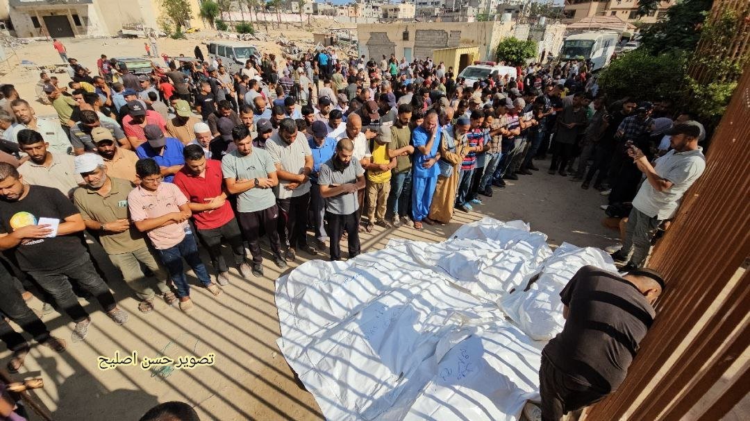 Funeral prayer on Palestinian martyrs, who were among the 71 who