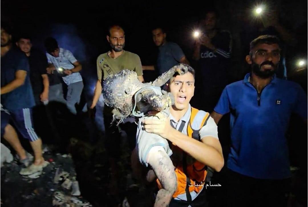 the Israeli genocidal air strikes on Dair El-Bala'h, in the