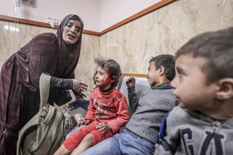 Palestinian martyrs and injured arriving at Al-Nasr hospital in