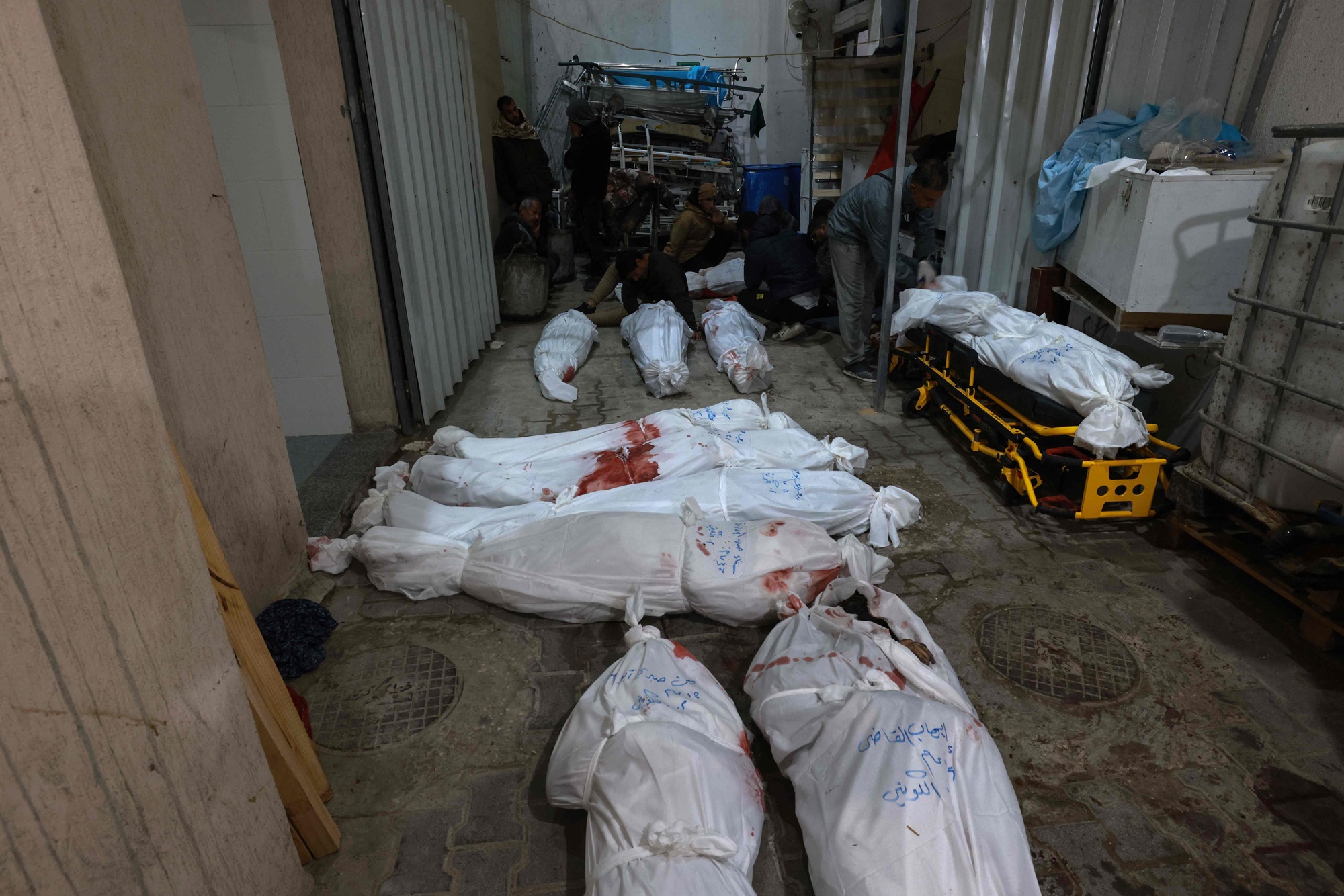 Grieving and performing funeral prayers, at Al-Ahli hospital, on