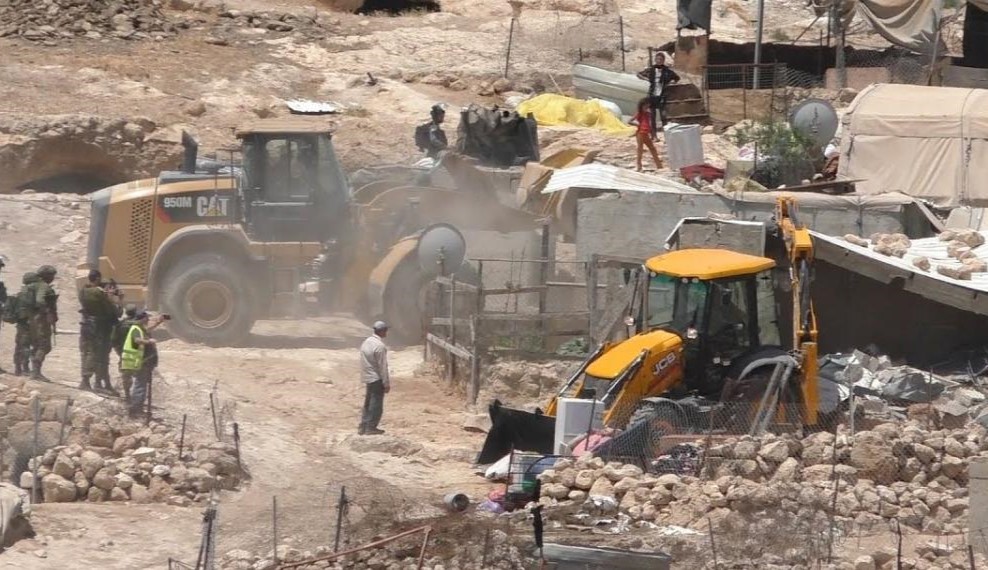 the rubble of their house, which was demolished by Israeli bulldozers in