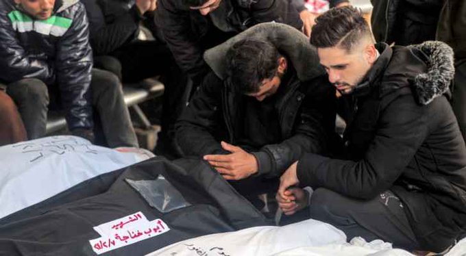 Grieving the death of family members who were killed by the Israeli genocidal