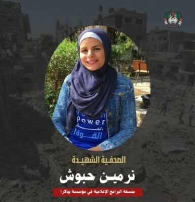 An Israeli genocidal air strike on a house in Gaza, file, January 1, 2024 The Palestinian journalist, Nirmeen 'Habboush,