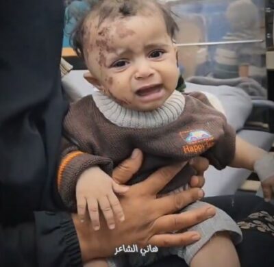 An injured Palestinian little girl, who survived an Israeli genocidal air strike on Gaza Strip, receiving treatment in a hospital, January 1, 2024 The injured Palestinian little boy, Hani