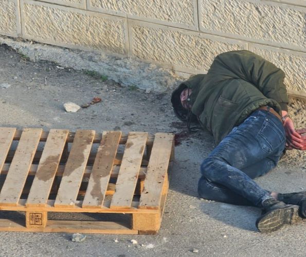 An injured and handcuffed Palestinian man who was brutally assaulted
