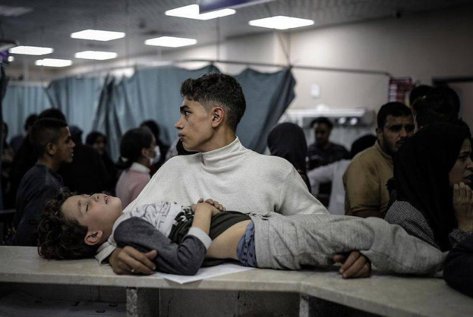 sitting on a hospital floor, waiting for treatment, January 7, 2024