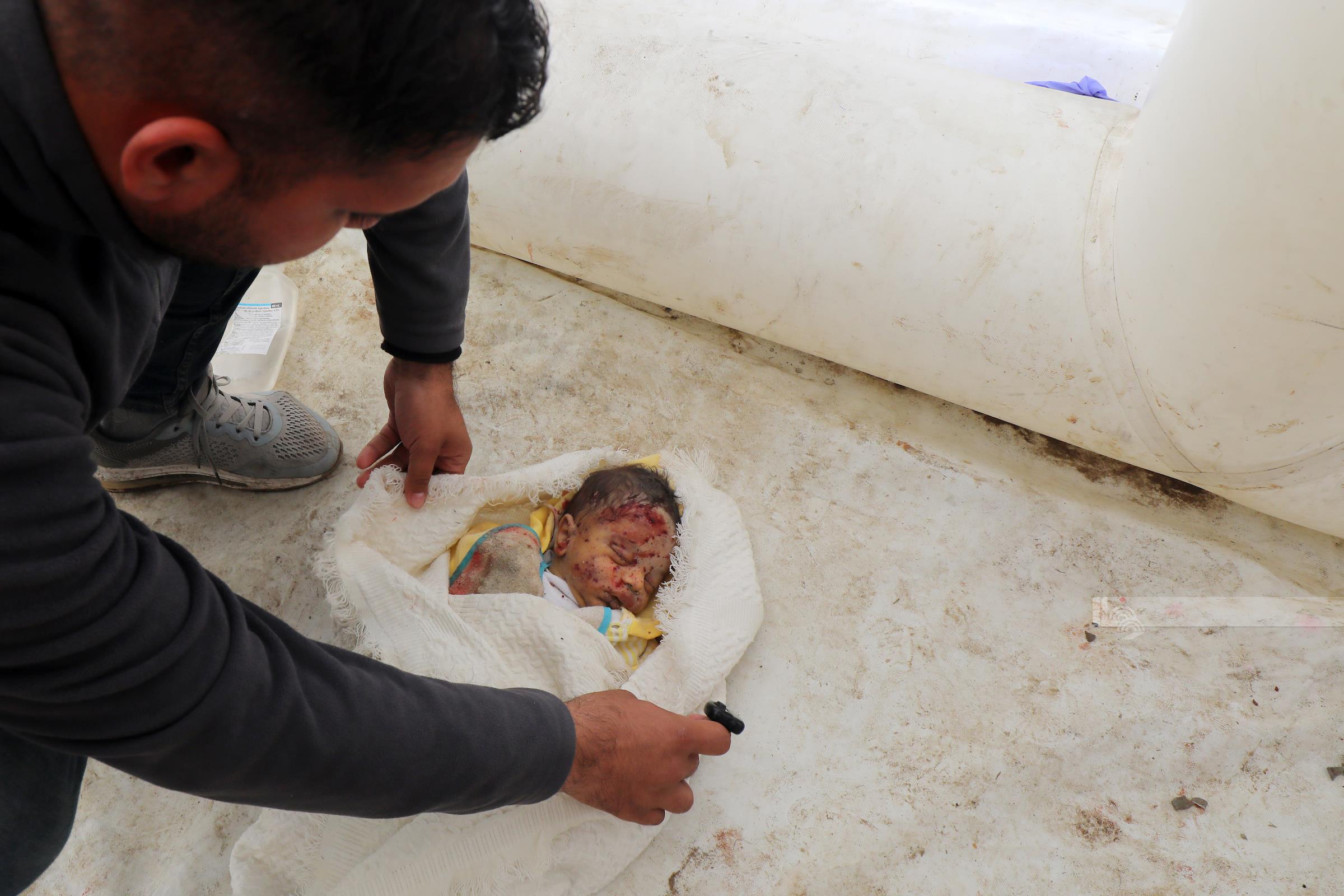 Palestinian women grieving the death of relatives who were killed by Israeli genocidal air strikes on Gaza Strip, January 6, 2024 A Palestinian infant who was killed by Israeli genocidal air strikes on Gaza Strip, January 6, 2024