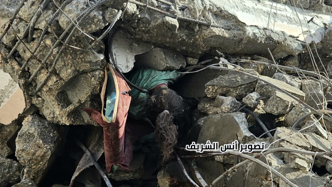 A martyred Palestinian girl seen under the rubble of her house, which was destroyed by an Israeli genocidal air strikes on Gaza Strip, January 6, 2024 Bidding farewell to relatives who were killed by Israeli genocidal air strikes