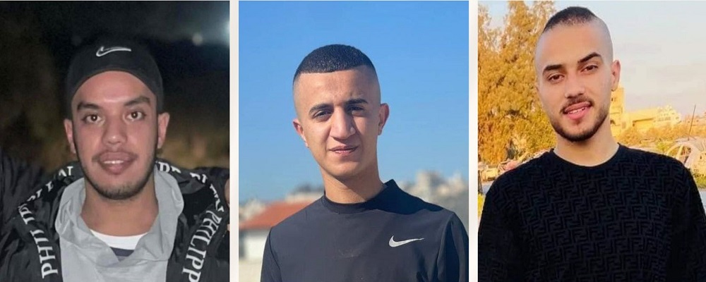 young men, Yusuf Al-Kholi, 'Aahid Mousa, and Tariq Shaheen, who were killed by Israeli occupation soldiers, in