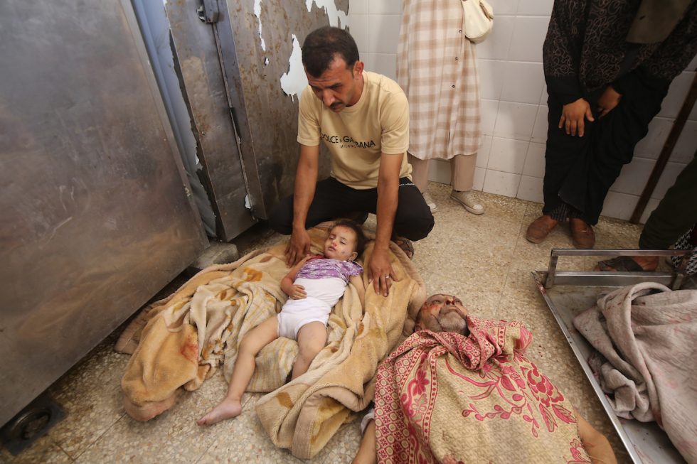 A devastated Palestinian father looks at his daughter who was