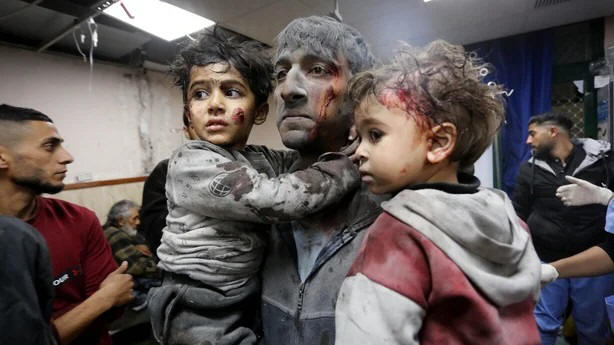 being massacred by Israeli genocidal air strikes on Gaza City,