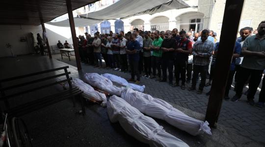 Performing funeral prayer on some of the Palestinians who were
