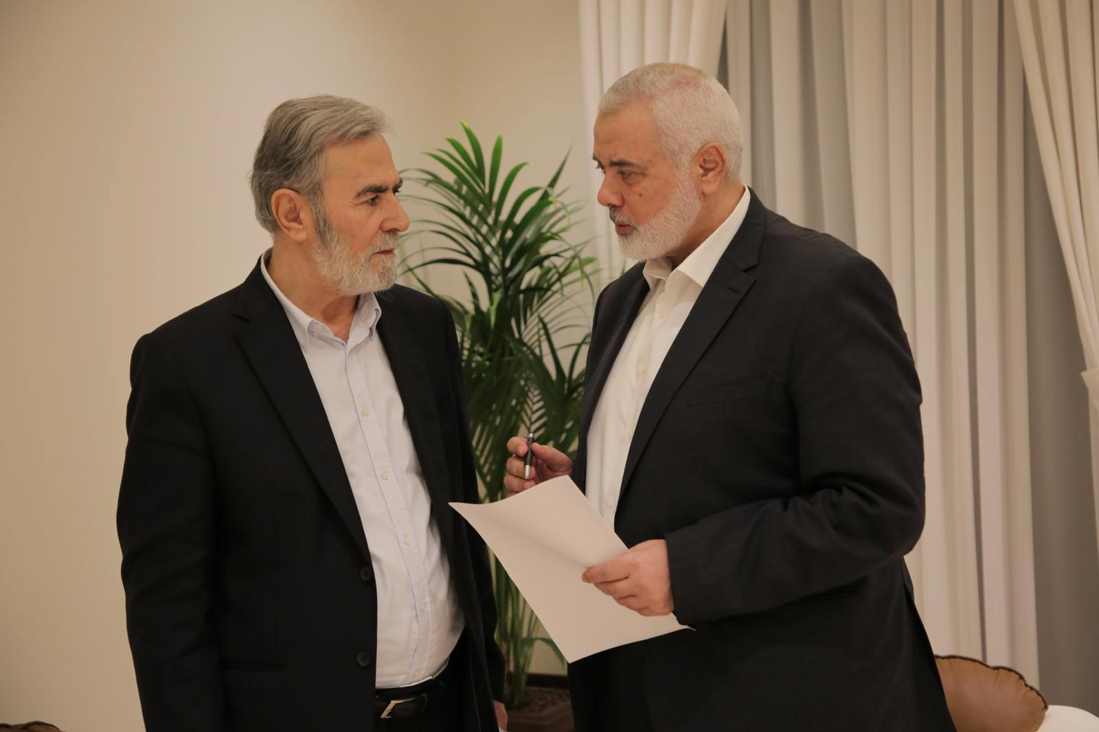 Leader of Islamic Jihad, Ziyad Al-Nakhala, left, and leader of