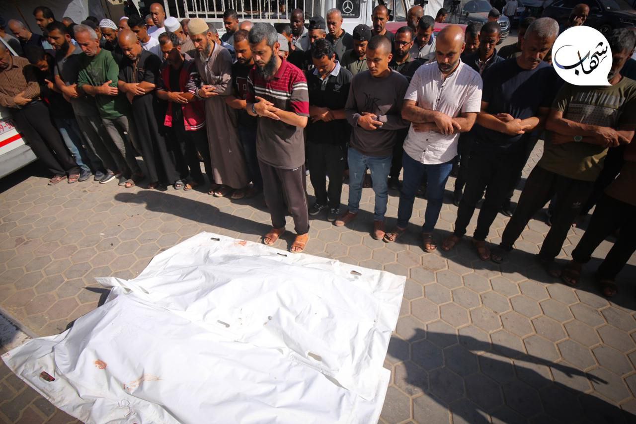 Performing funeral prayer on some of the 30 Palestinian martyrs