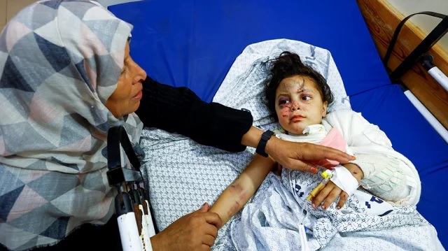 injured by Israeli genocidal air strikes on an Al-Nusayrat