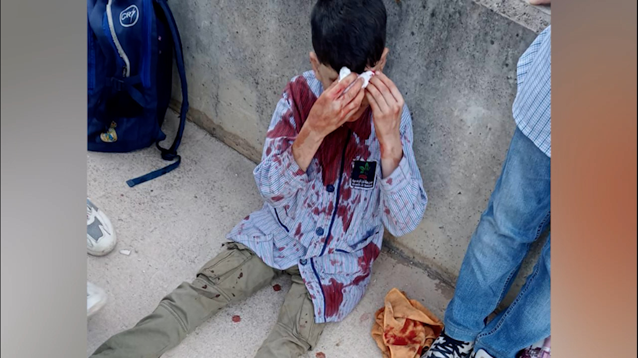 Israeli genocidal air strike on a school bus, in the Nabatiyah