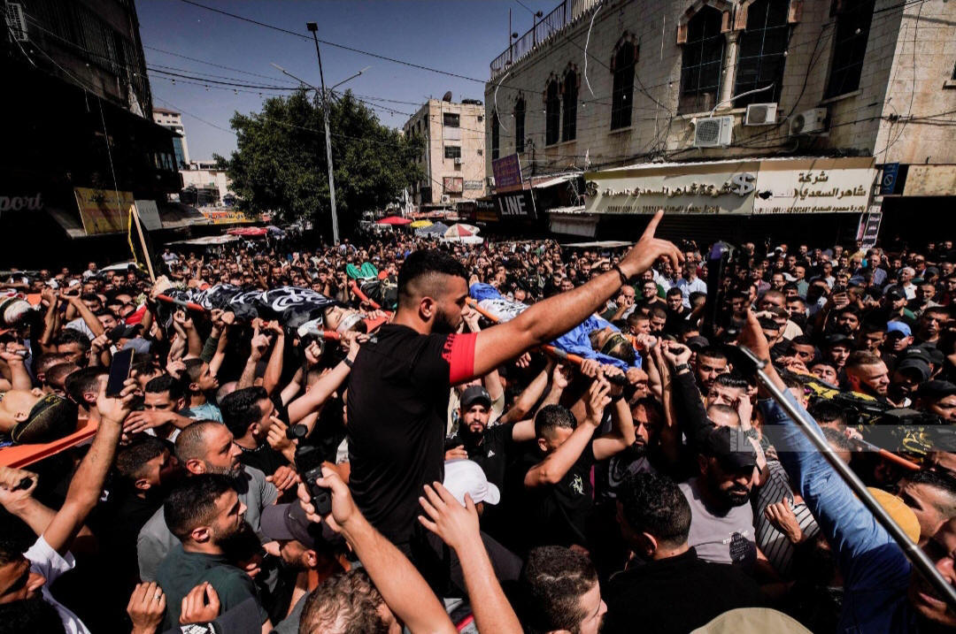 Thousands of Palestinians gathered to mourn the 12 victims of