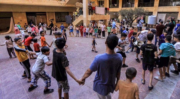 sheltering displaced Palestinians on the grounds of Al-Aqsa