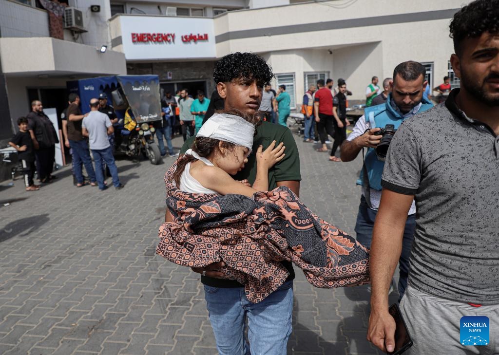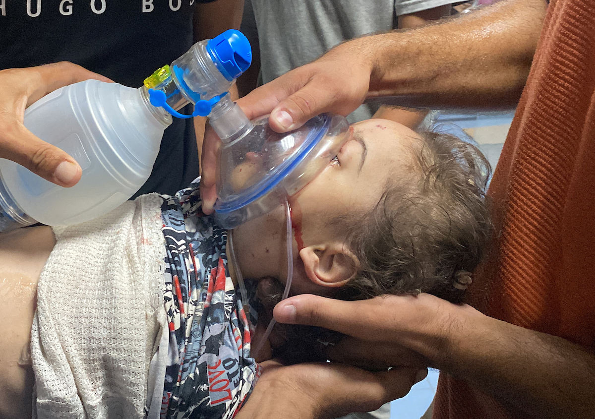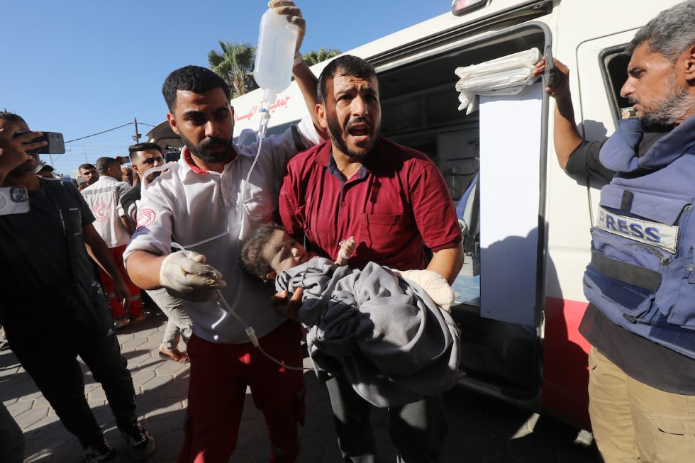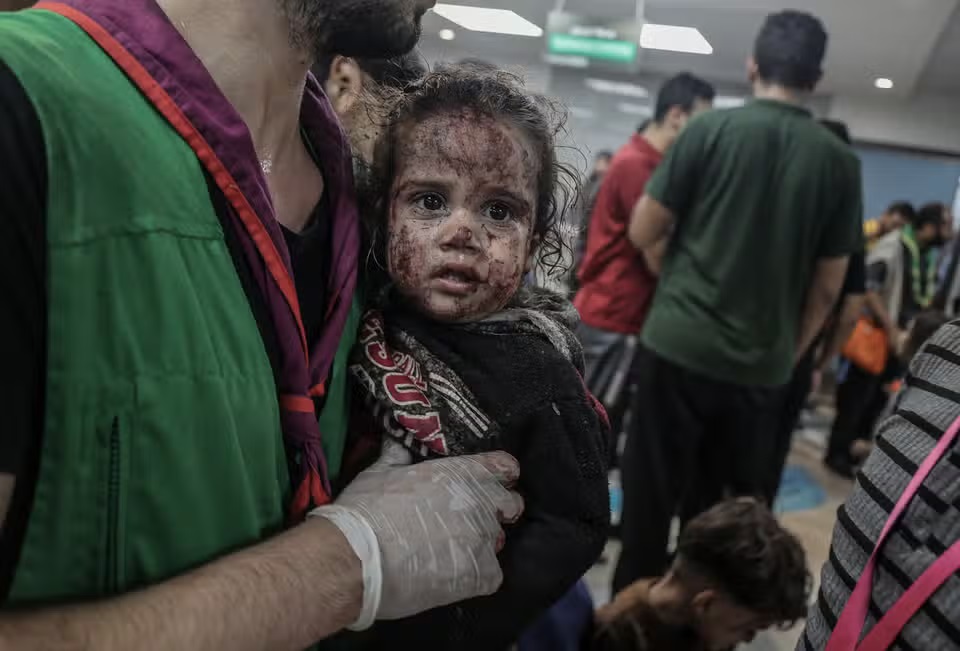 42 Palestinian were killed, 107 were injured, mostly children and women, such as this little girl who is being carried to the Dair El-Balah hospital, September 4, 2024