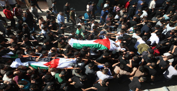 Funeral procession of three Palestinian citizens who were martyred yesterday