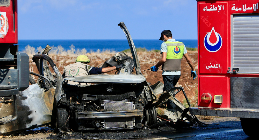 An Israeli genocidal drone strike kills three Lebanese civil defense workers, in south Lebanon, on September 7, 2024