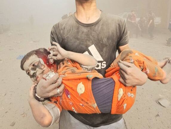more death among Palestinians,  such as this half-buried Palestinian child, September 3, 2024