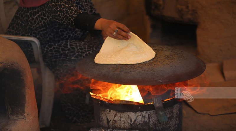 Ni'ma Abu Mousa, 33, operates a rudimentary oven to bake