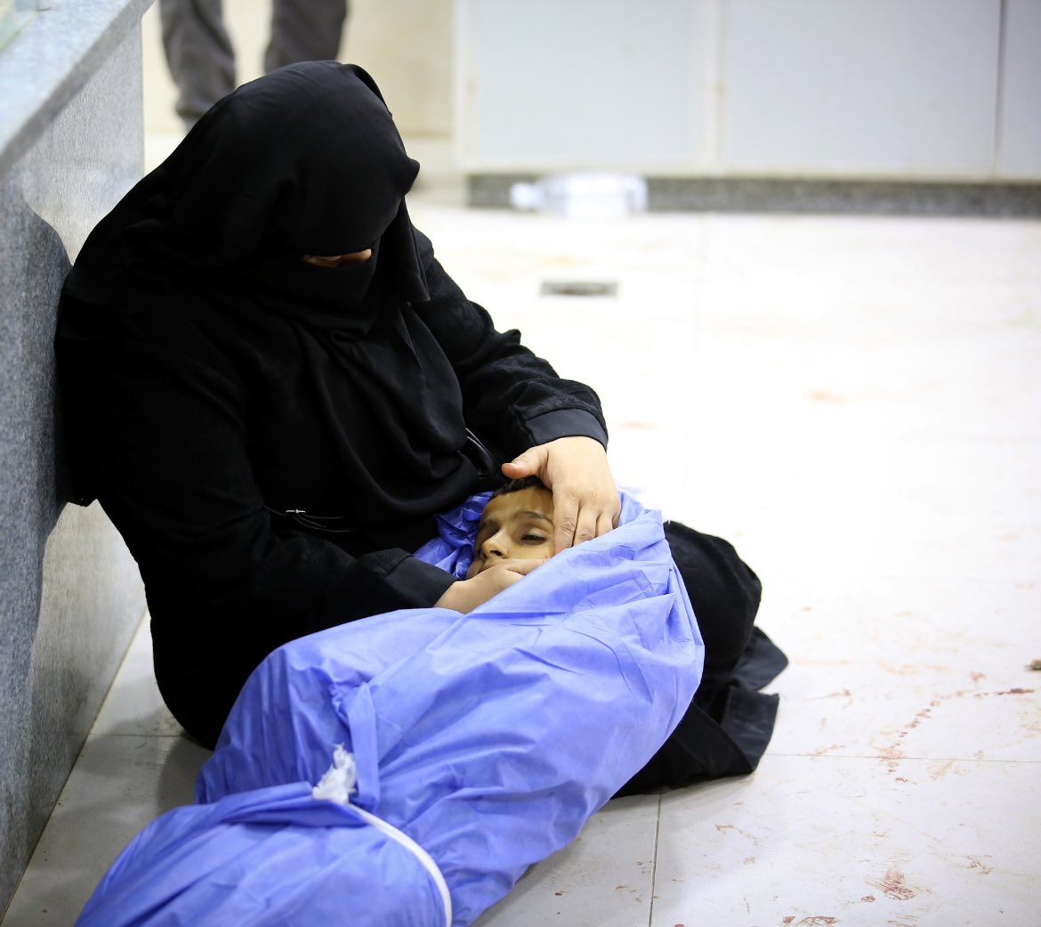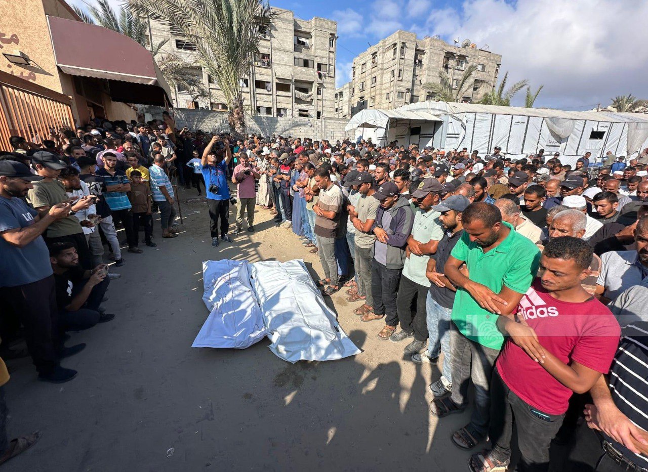 Performing funeral prayer, at Al-'Awda hospital, for two of
