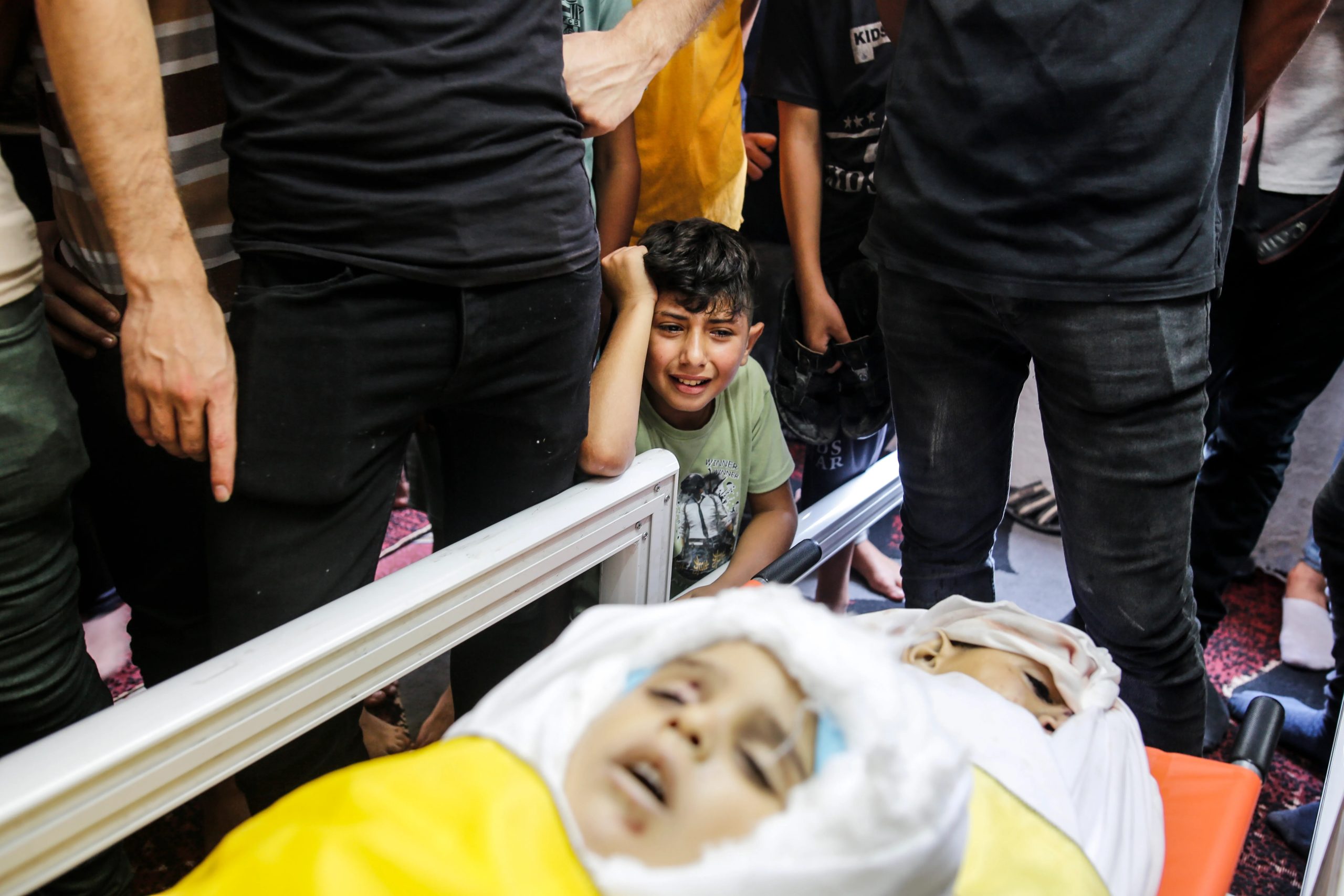 their relatives, in Al-Rimal, west of Gaza City, July 7,