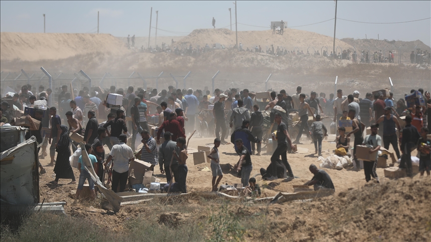 occupation forces near the Rafa'h aid distribution center,