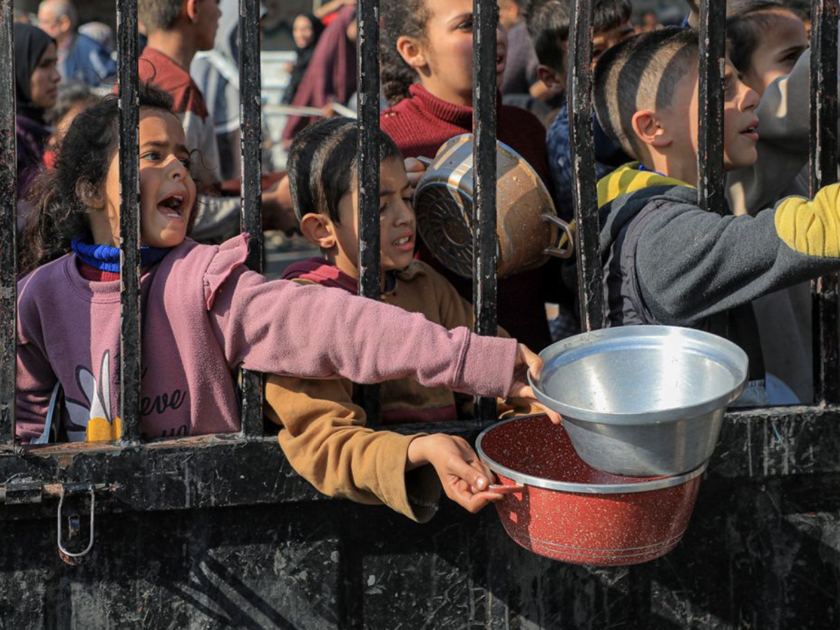 Starving Palestinian children scrambling to get some soup
