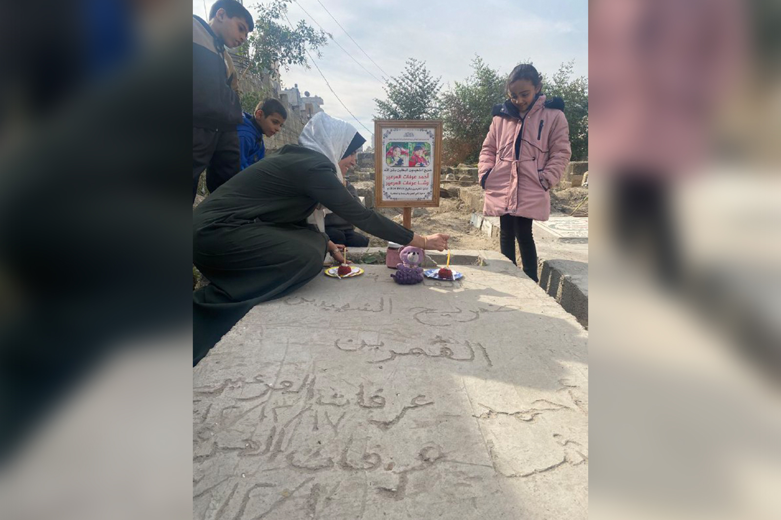 With a small cake and hands trembling with longing, Nour Al-Nabiha,