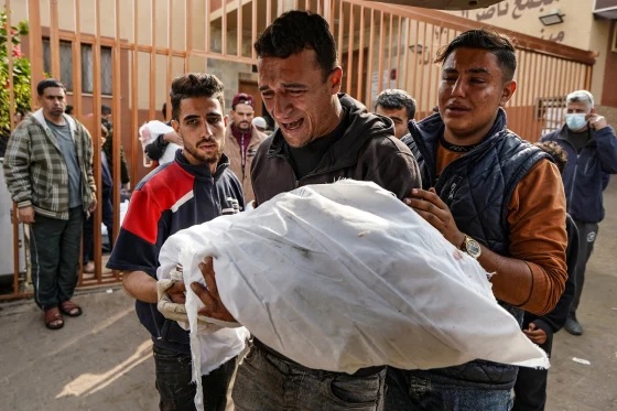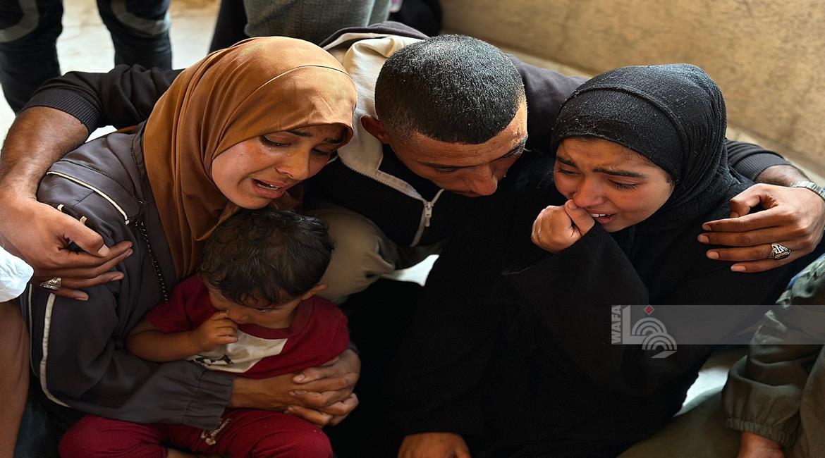 Carrying, to the hospital, the Palestinian martyrs, who were