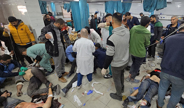 Grieving, at Nasir hospital, the death of Palestinian family