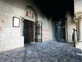 Rosenfeld said "anti-Christian" slogans were scribbled in Hebrew on the
