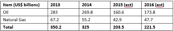 and 2016 from 2014 levels for oil export revenues ($109.8 billion and $96
