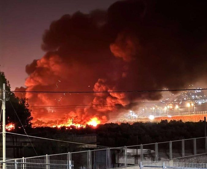 Palestinian-owned car scrapyard on fire, in the town of 'Huwwara,